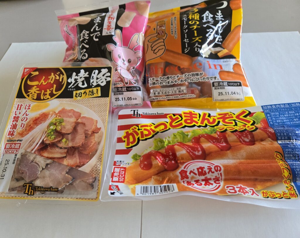 計算がたいへんなので、100円にいたしました。他の3品はすこし期限が近くなっております。