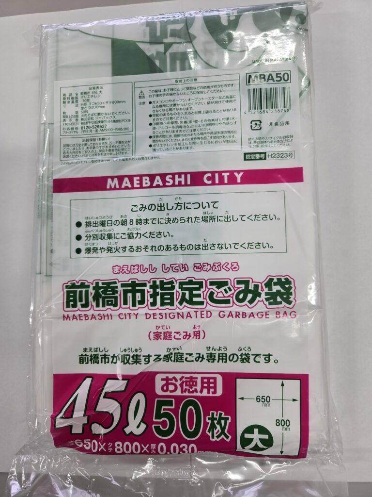 前橋指定ごみ袋 50枚入りを販売いたします。